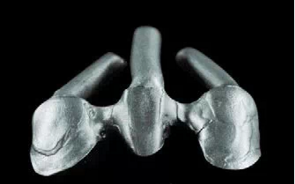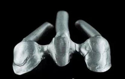图6:铸造固定桥,采用铸道直接连接的方式。