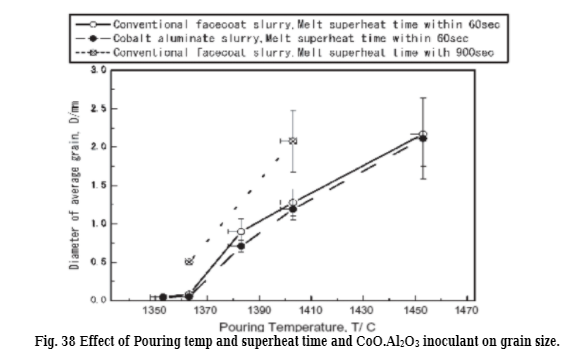 浇注温度和过热时间对晶粒尺寸的影响如图38所示。