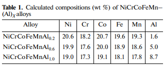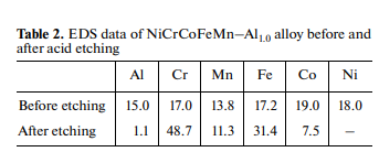 然而,[7-9]的作者表明构型熵的计算值与获得的实验多组分合金的相组成之间没有明确的相关性。发现相组成取决于HEA中所含元素的原子特性,而不是其数量。