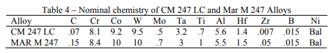 先进的高温合金材料已被引入,以响应工业对改善合金性能的需求。等轴合金cm939可焊“,cm247 LC”和cm681 LC, DS合金cm247 LC和cm186 LC和SX合金CMSX-4是这些改进的代表。