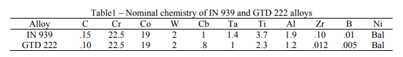 IN 939合金(表1[8])是在20世纪60年代末由国际镍公司开发的。这种22%的铬(Cr),耐高温腐蚀合金已广泛应用于工业燃气轮机(IGT)市场的等轴叶片,段和燃烧器喷嘴。然而,由于边缘延展性和相关的合金化学设计,IN 939铸件很难焊接修复。
